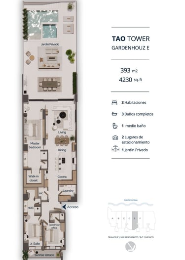 Una mezcla sofisticada de serenidad costera y elegancia arquitectónica. VI Tower ofrece amplios espacios habitables diseñados para el confort, la privacidad y la conexión con la belleza natural del Pacífico.